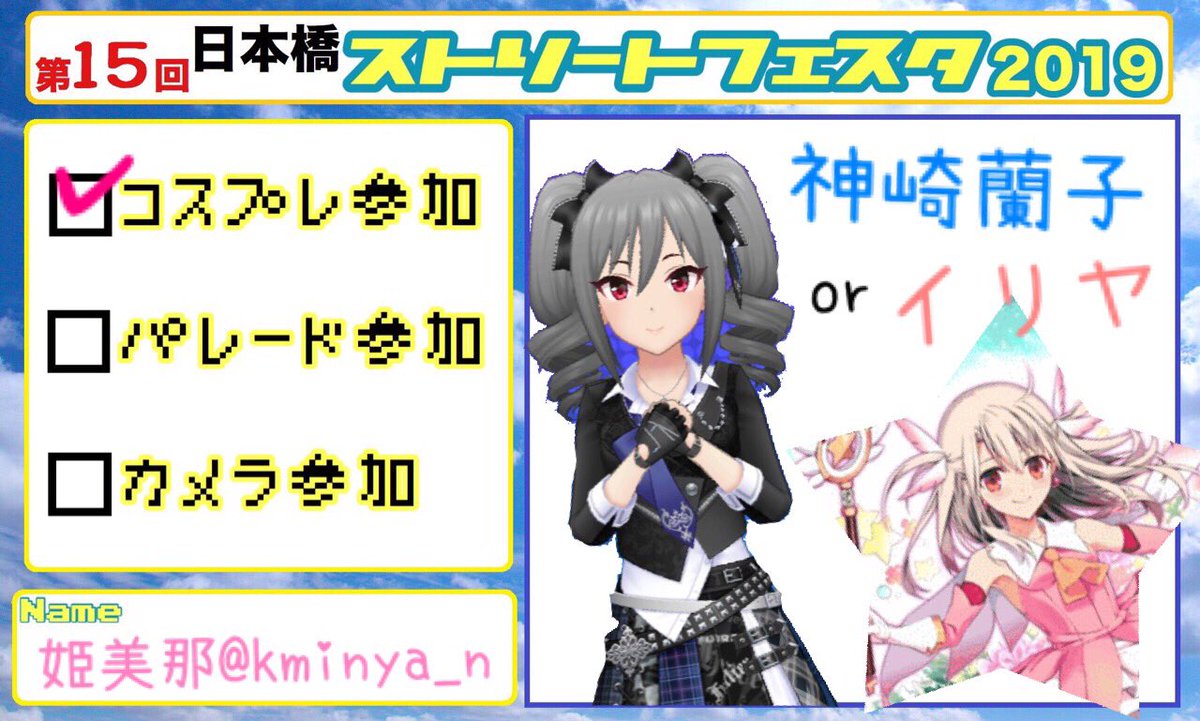 衣装が間に合えばネクストフロンティアの神崎蘭子で間に合わんかったらイリヤします( ´ ꒳ ` )ノ