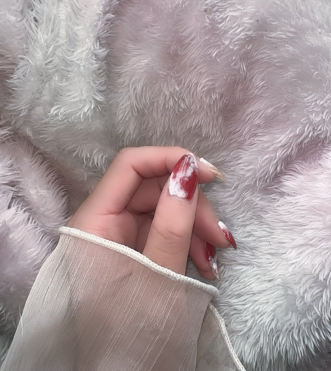 GT開幕だし、マッハ車検カラーの赤白のネイルにしたくてしてきたんだけど