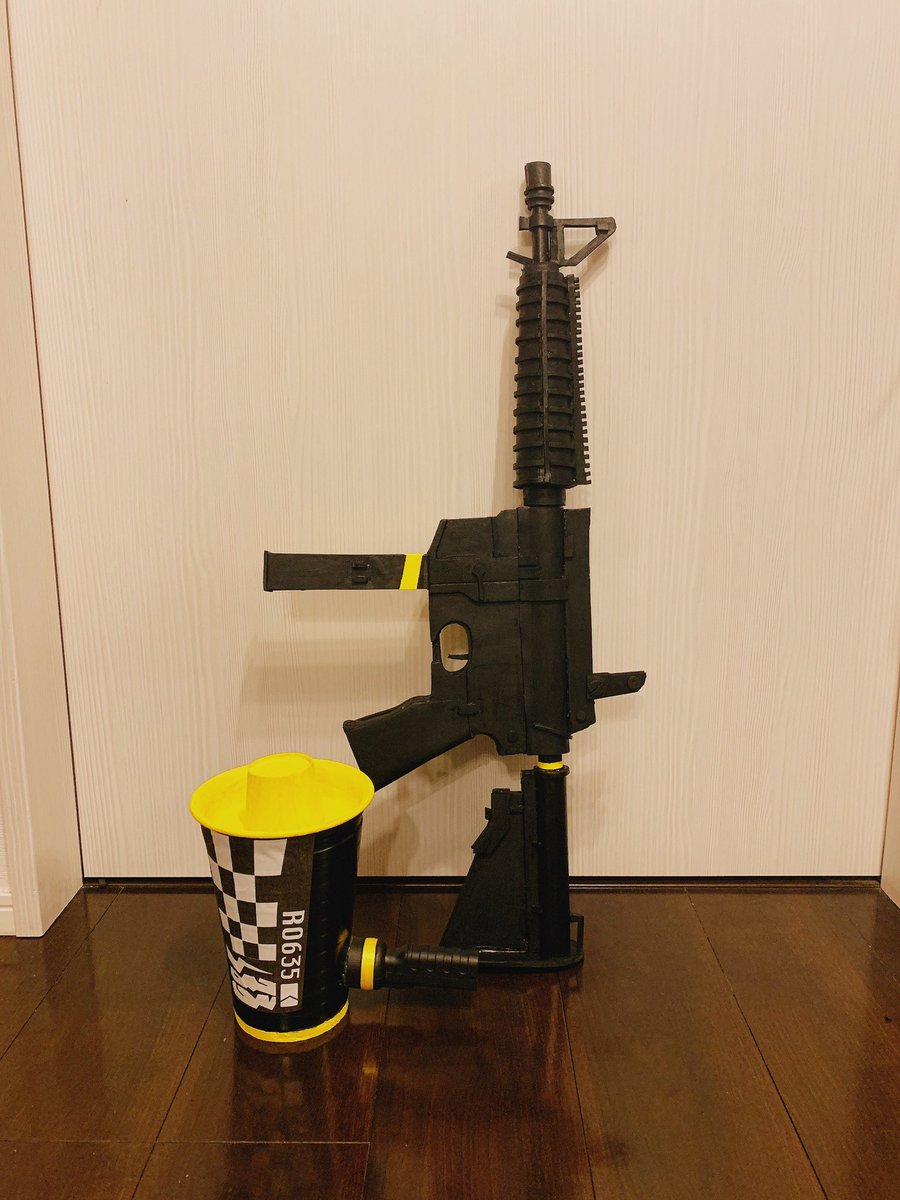 銃に関しては圧倒的知識不足と造形技術不足で許してもらいたい感じに🙇♂️🙇♂️メガホンは100均のゴミ箱でできてる🙃🙃寝るゥ🛏