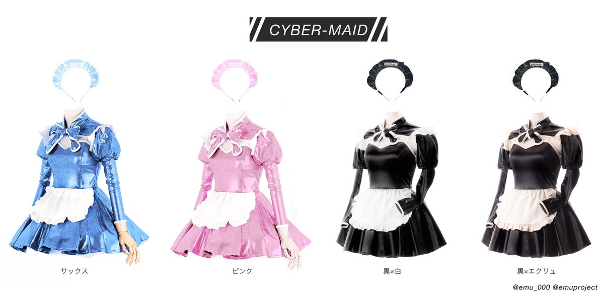 アンドロイドなメイドさんをイメージしたメイド服、人気の黒と新色のフレアスカートの再販です!受注期間が短くなっていますのでお早めにご検討ください🙏