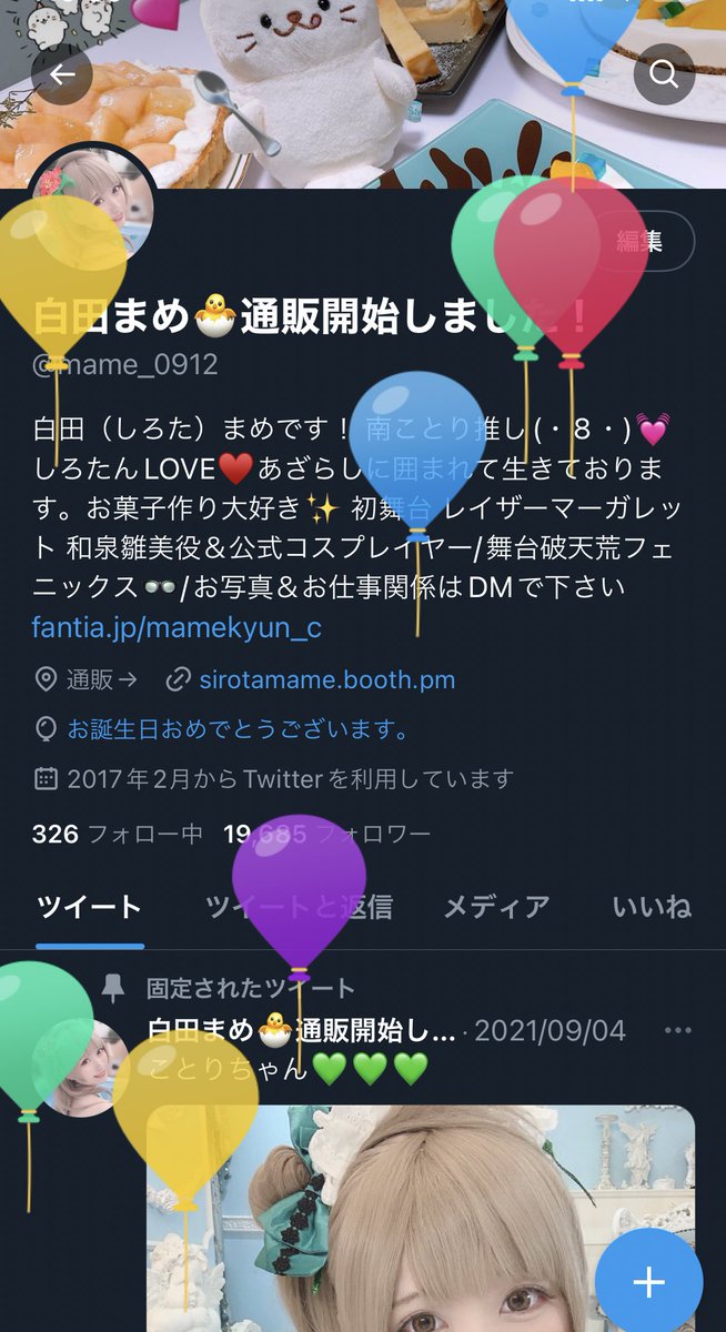 生まれたー!!はっぴーばっすでー自分☺️🎉🎊💐👏♥️また新たな1年、ことりちゃんコスはもちろん、他の活動も色々出来たらいいな〜✨️ newまめもよろしくね(*˘︶˘*).:*♡