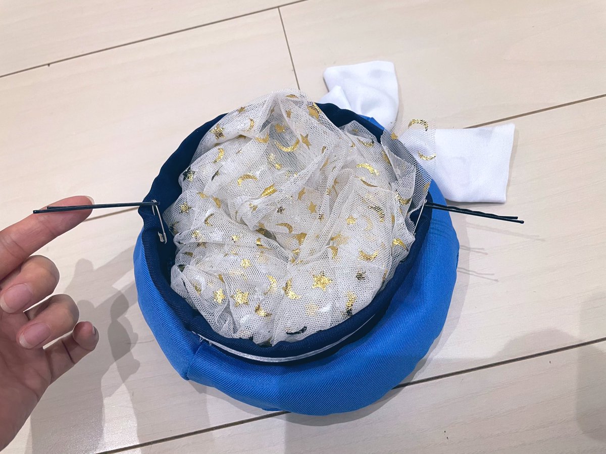 服に3枚目のストッキング部をつまんで縫いつけると完成!