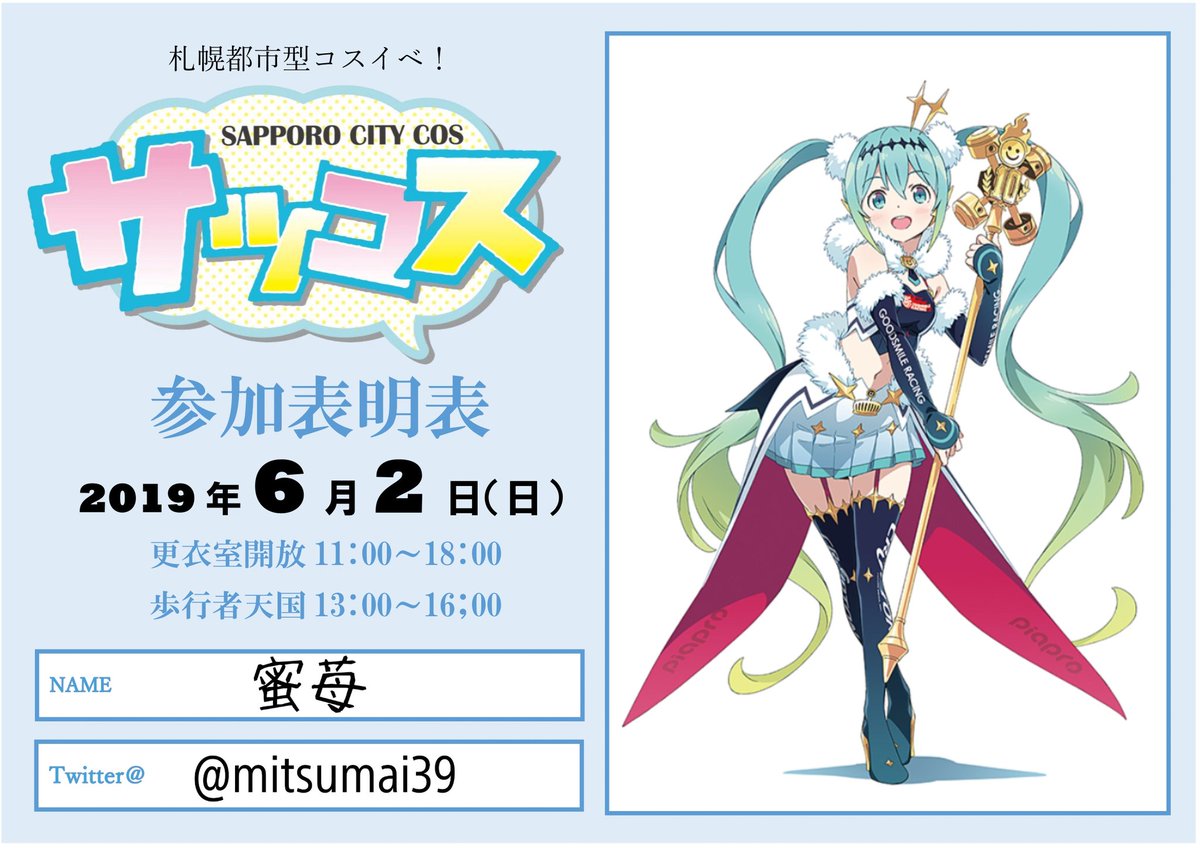 (起きれたら)サツコス、レーシングミク2018で行きます🙋 #サツコス