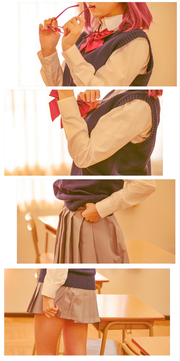 「うーん、スカートは漫画丈…眼鏡は一旦なしで…