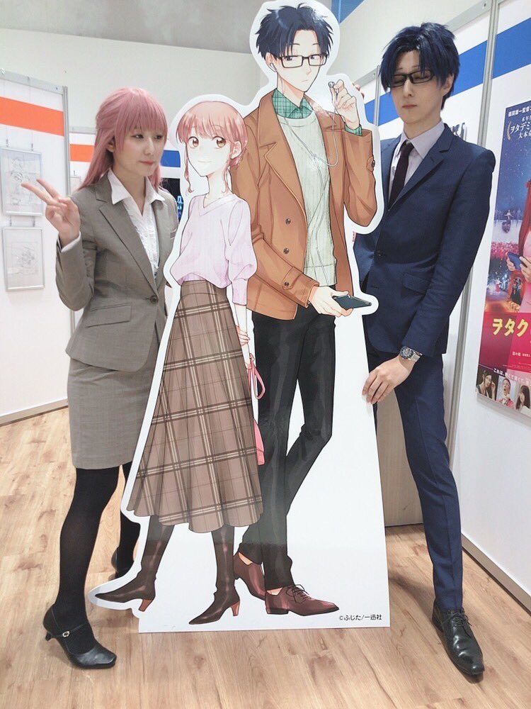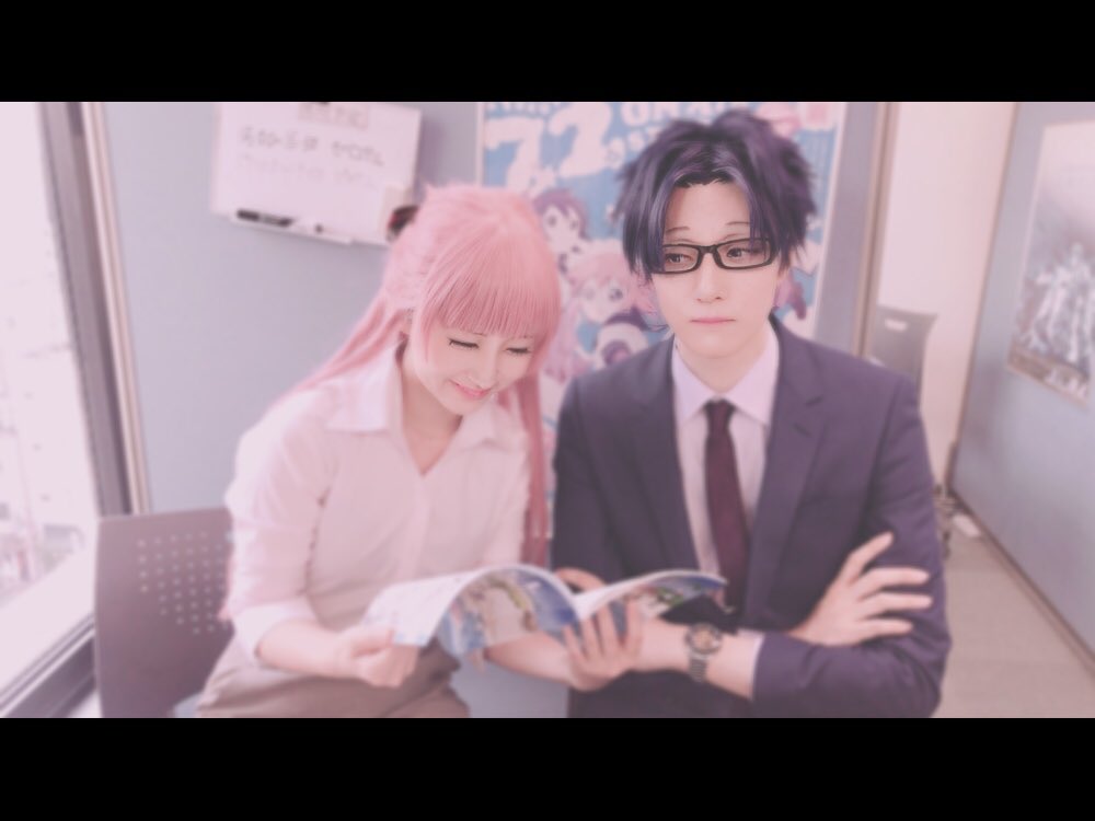 来たる週末のAnimeJapan2018!東5ホールJ70のアニプレックスブースにて、4月アニメ開始の『ヲタクに恋は難しい』桃瀬成海コスプレでプロモーション名刺の配布を行います❤️冬コミに続き、宏嵩コスの花束氏と一緒だぞー!今回はなんと先輩ズもいるとな😭💞